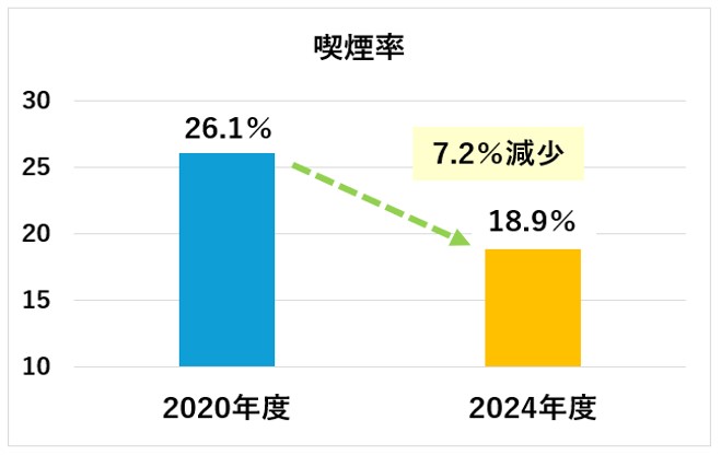 保健師による禁煙指導に加え、「オンライン禁煙外来」などへの参加を促進し、喫煙率の減少に取り組んでいます。