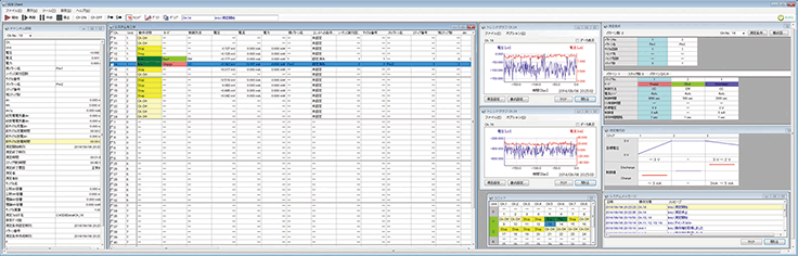 1台のパソコンシステムで128チャンネル16ユニットまで増設可能で、多チャンネルの同時試験や多彩な電池特性試験のデータ解析が可能です。