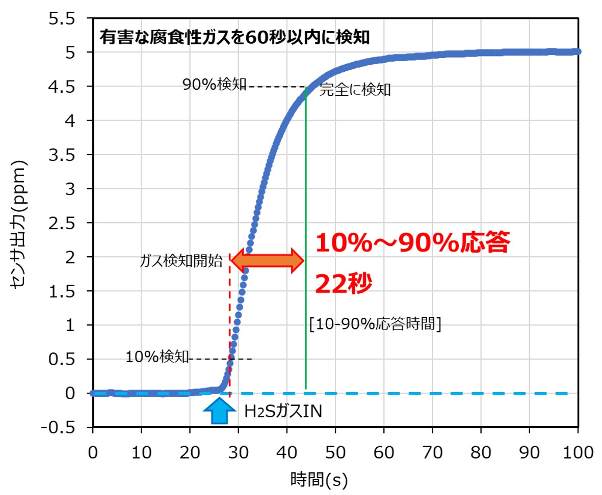 - 可燃性ガス30秒、腐食性ガス60秒の応答速度