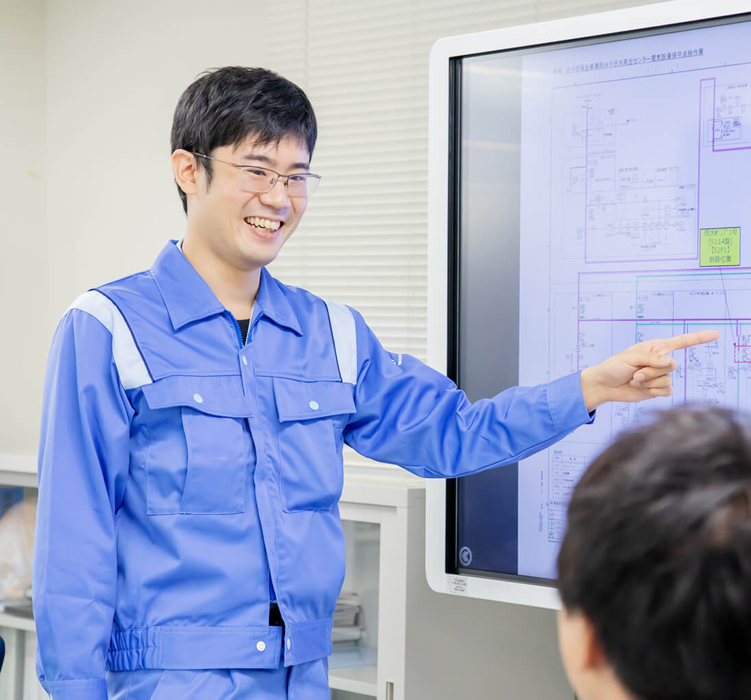 大学生時代、さまざまな講義、実習、研究を通して、機器の検査というものに面白さを感じるようになり、そこからエンジニアリング業界に興味を持ちました。「お客様に喜ばれる仕事がしたい、社会に貢献できる仕事がしたい」と就職先を考えていた時に、明電エンジニアリングと出会い、ワンストップサービスというお客様の立場に立ったサービスを行っていることを知り、また水道や下水道、鉄道といったインフラ設備のメンテナンスも行っており、社会の役に立つ仕事ができるということで入社を決めました。
