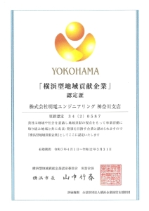 神奈川支店では、地域や社会を意識し地域貢献の視点をもって事業活動に取り組み地域と共に成長・発展を目指す企業と認められ