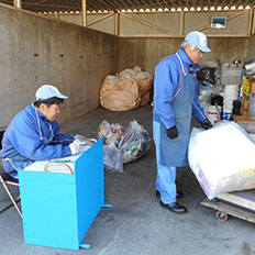 廃棄物分別表の写真では判別のつきにくいものは、サンプルを置いて疑問があるときには自分で確認できるように目で見てわかる指導を心がけています。