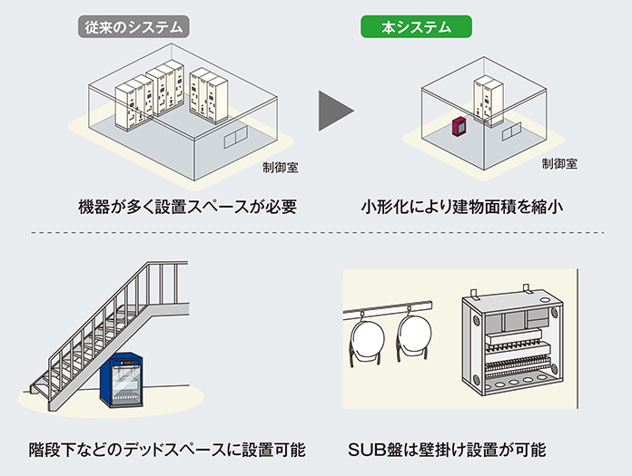 - ※現場の状況により、システム構成や内部収納機器が異なる場合があります。