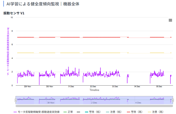 水処理、石油化学、電力など様々な業界で、モーター、ポンプ、コンベア、風力発電設備等1000件以上導入・運用されています。 - 閾値設定が自動