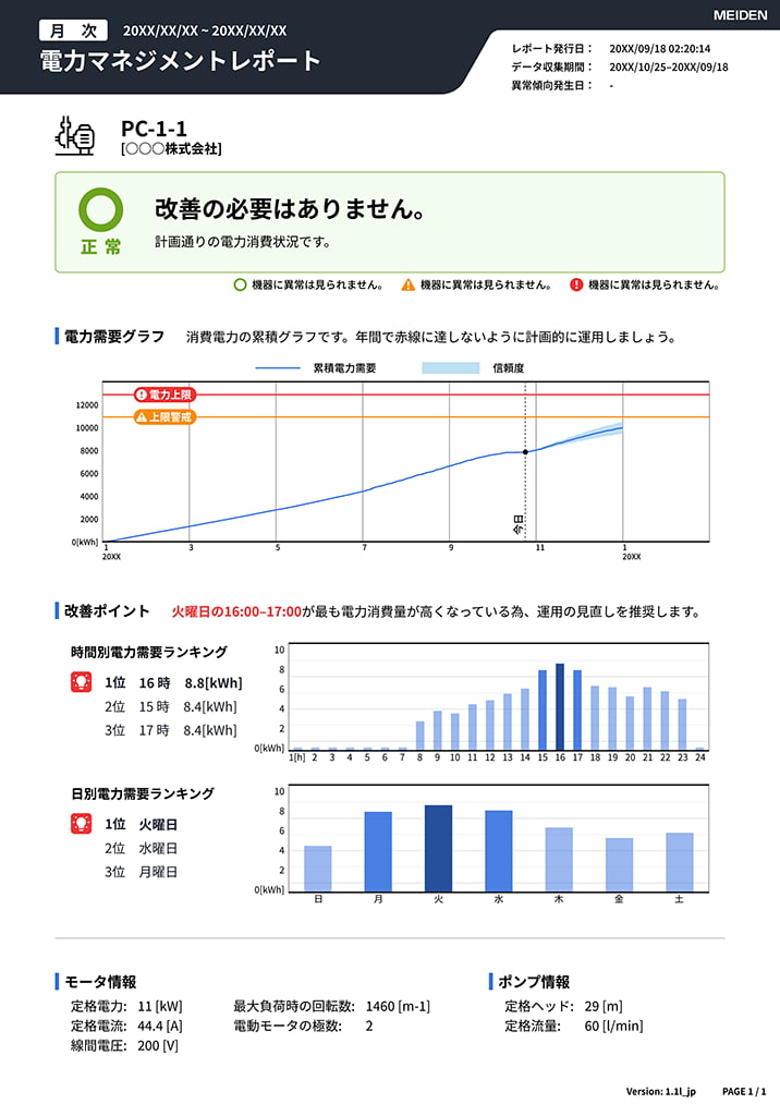 AIを活用した回転機の状態監視・予知保全サービスです。 モーター、ポンプ、コンベアなどを24時間遠隔監視し、故障予兆判断と電力・CO2マネジメントで保全コスト削減と環境経営を支援します。