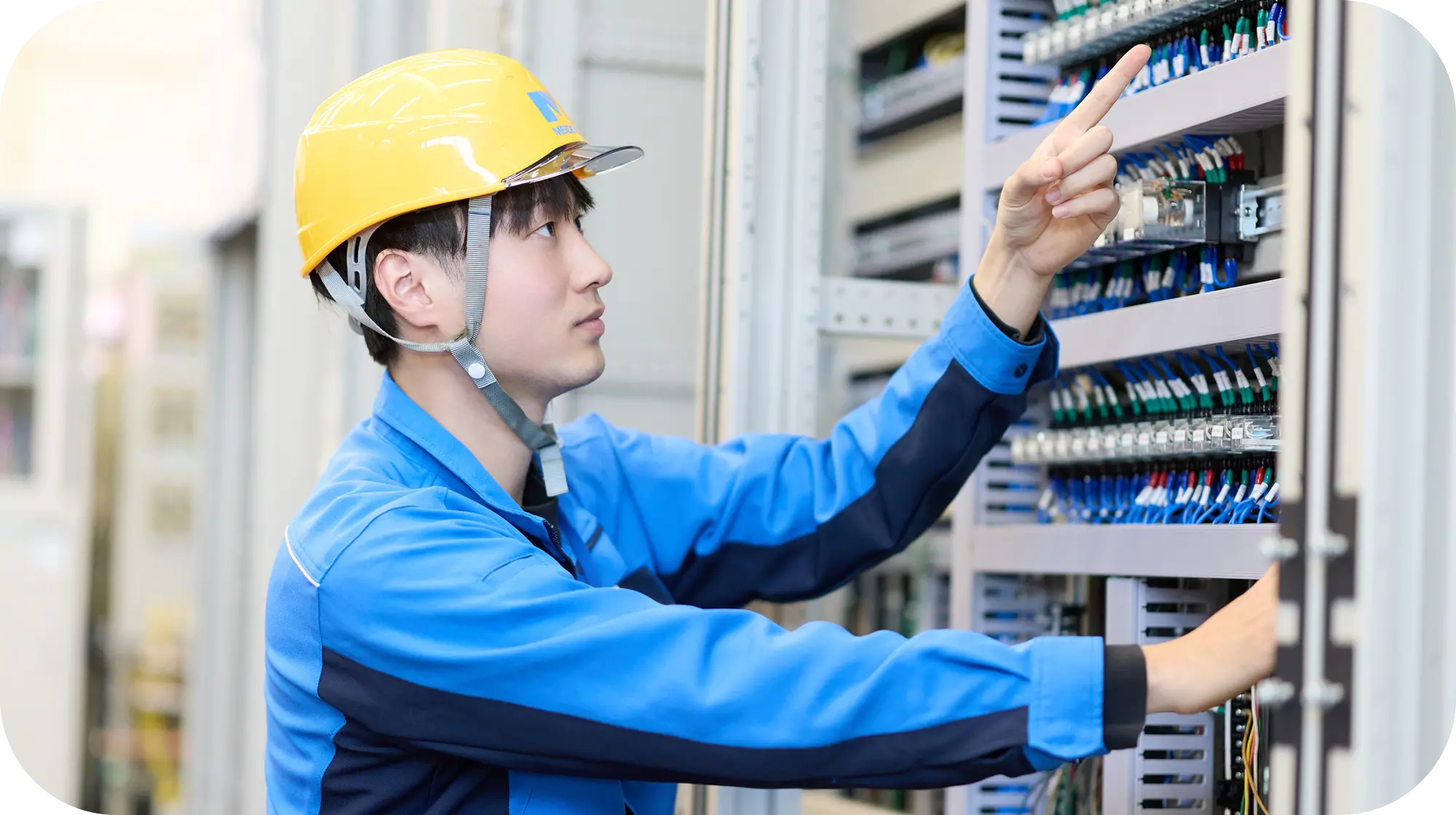 担当業務は、発電機関係の制御を行う製品の試験。製品が設計図通りに作られているか、性能が満足のいくものかを入念に確認します。図面通りだから良いと判断せず、実際の動きを考えながら問題ないかを見極めなければならない点が難しくもあり、やりがいを感じる部分ですね。