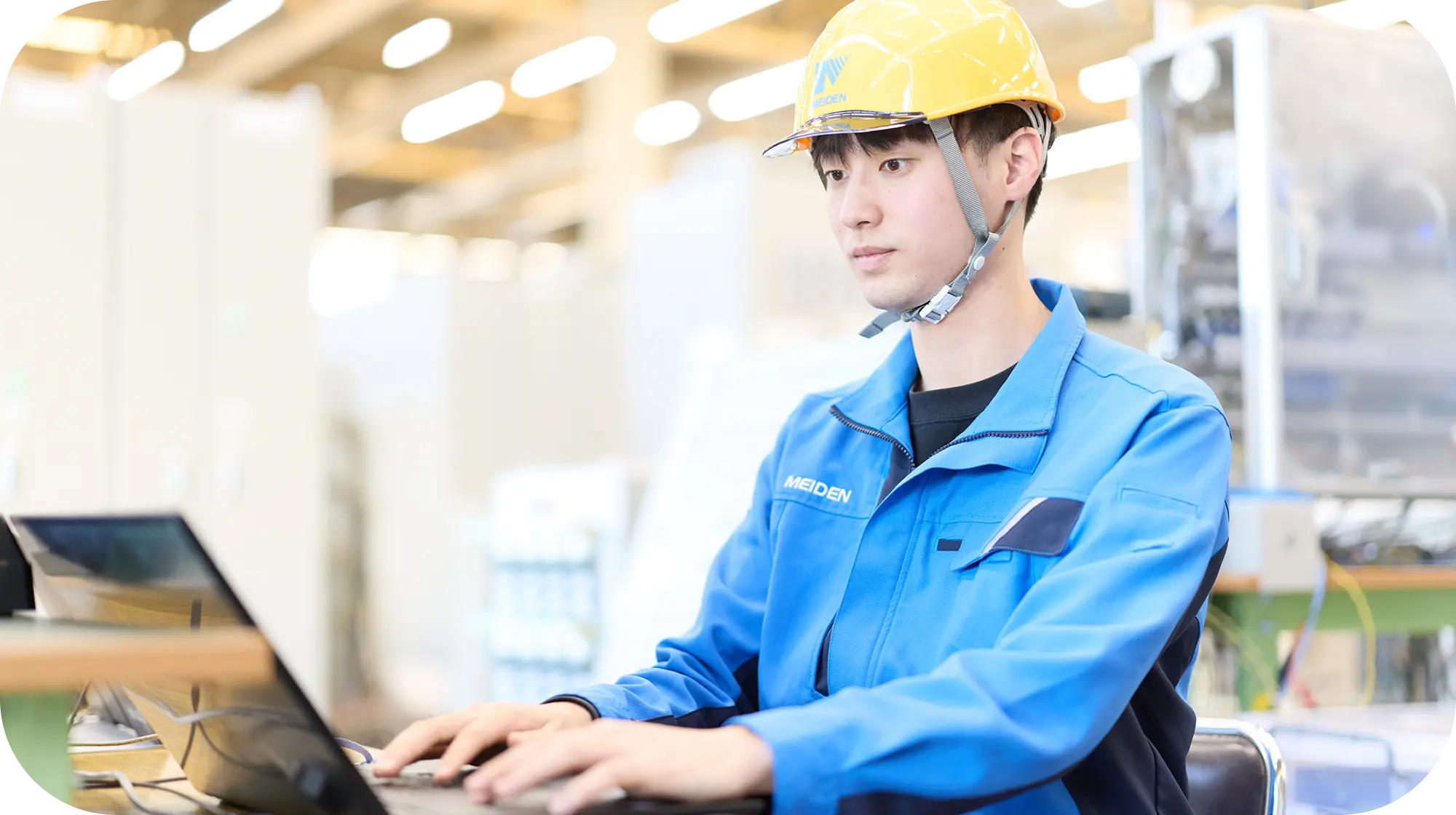 大学での企業説明会が明電舎を知ったきっかけです。説明会を通じて、明電舎がチャレンジ精神や継続的な学習姿勢、そしてチームでの協力を大切にしている点が自分の求めていた企業像と合致しており、強く興味を持ちました。学生時代から人と関わりながら楽しく仕事をしたいと考えていたため、社風についても話を聞いていく中で自分に合っていると感じました。