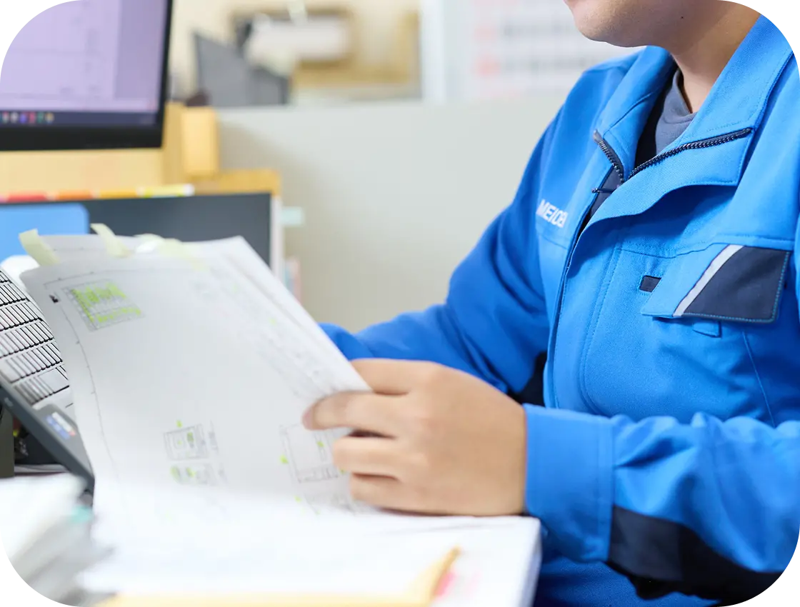 モノづくりオーダーメイドのモノづくりで社会インフラを具現化する仕事です。顧客の要望を基に、電力機器やシステムの仕様決定から詳細設計までを担当。世界に一つだけの製品を生み出し、人々の生活基盤を技術で支える、スケールの大きな設計業務に挑戦できます。